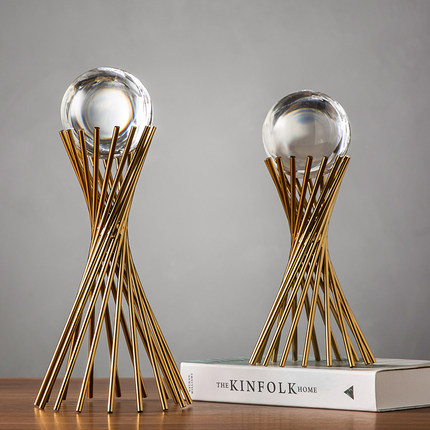 クリスタルボールの置物ヨーロッパ式リビングルームの本棚オフィスのアメリカ式のキャビネットの家庭用の豪華な風の鉄の飾り物