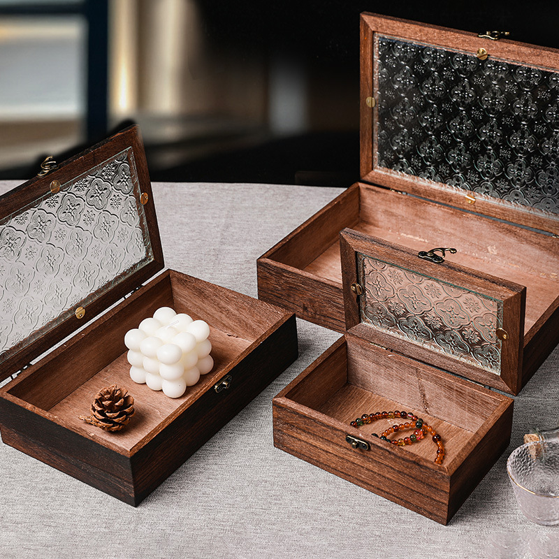 北欧レトロ木製ベゴニアフラワーガラス収納ボックス装飾品デスクトップ収納ボックス絶妙なジュエリーボックス整理ボックス