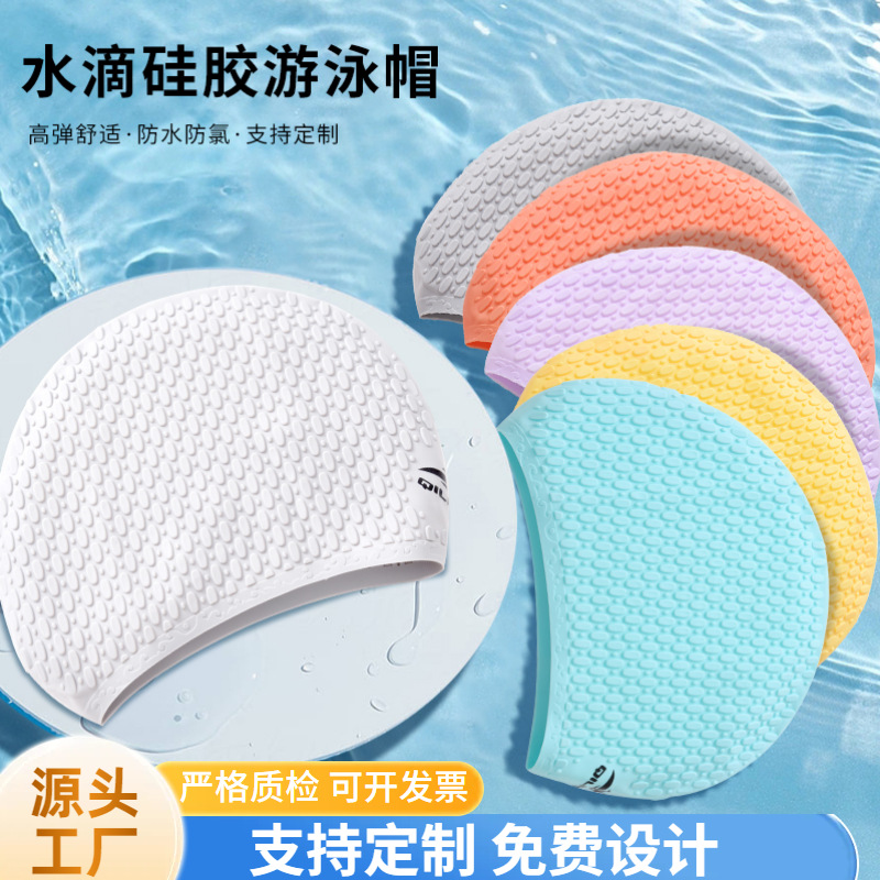 Qilang 大人用スイミングキャップシリコン防水男性と女性の水滴キャップカスタムロゴ高弾性ロングヘア耳保護大型スイミングキャップ