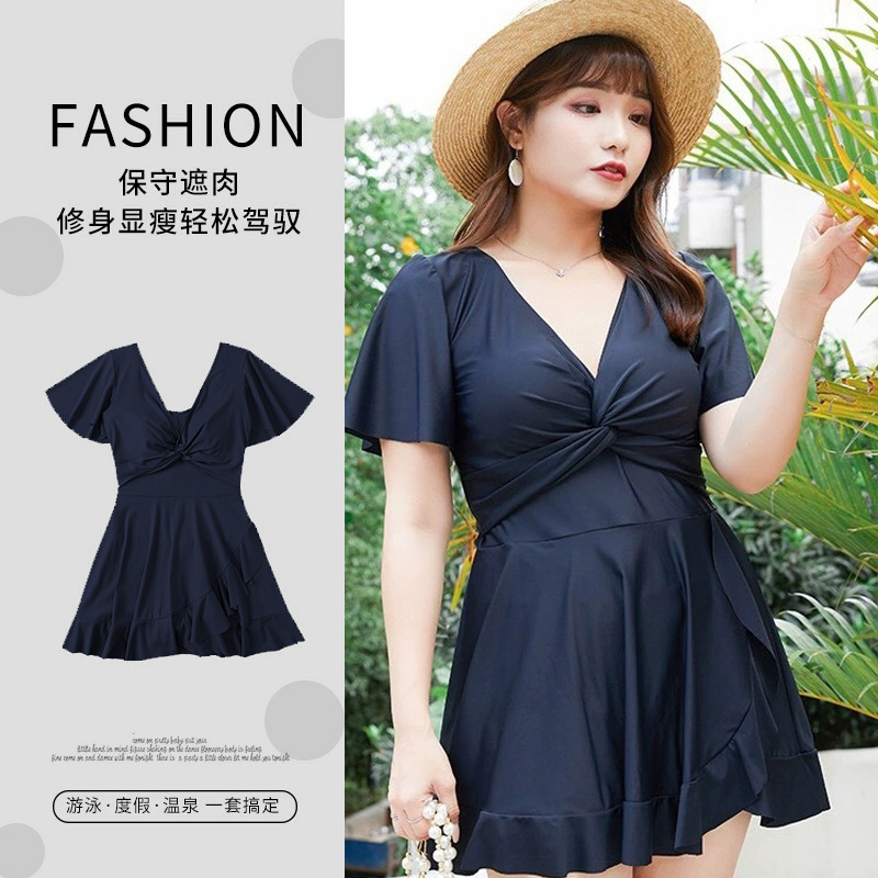 大きいサイズの女性用水着、ワンピース、太ったMM、プラスサイズのスカートスタイル、肉感カバー、痩身、ボクサーパンツ、控えめでセクシーなVネック温泉水着