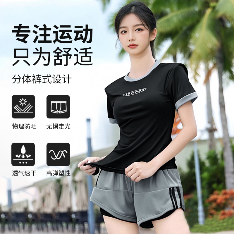女性用スプリット水着3点セット、日焼け止め、長袖、肉感カバー、痩身、夏の海辺の温泉、コンサバティブ水着卸売
