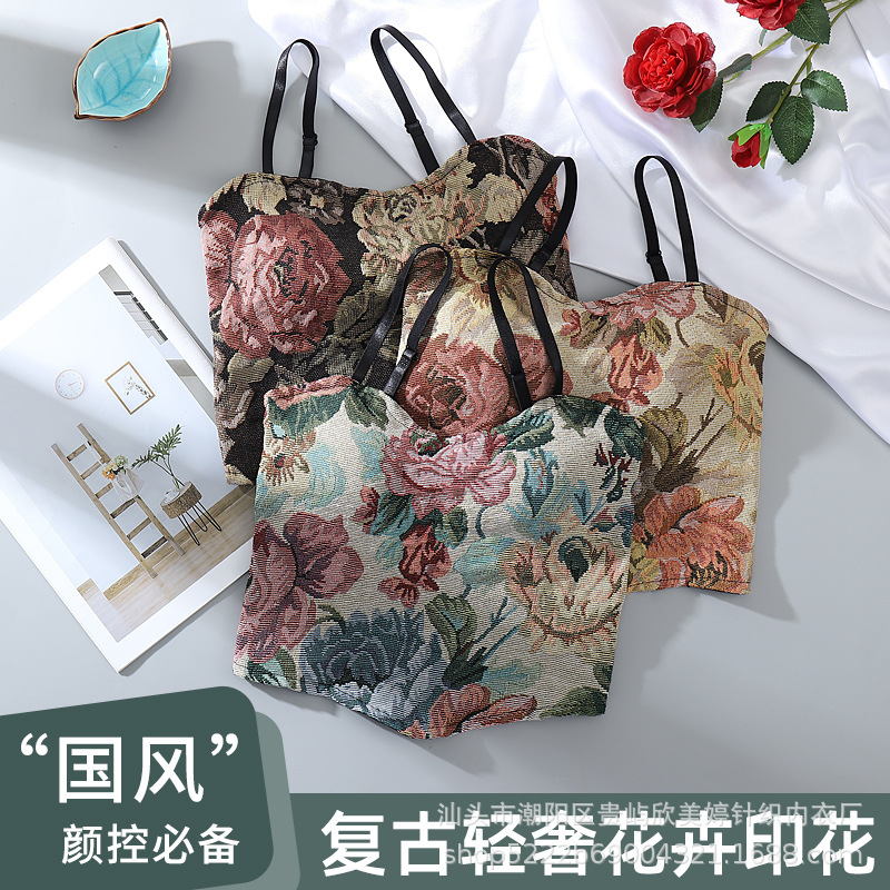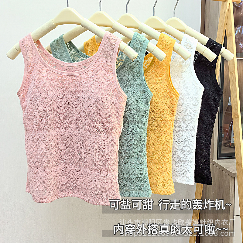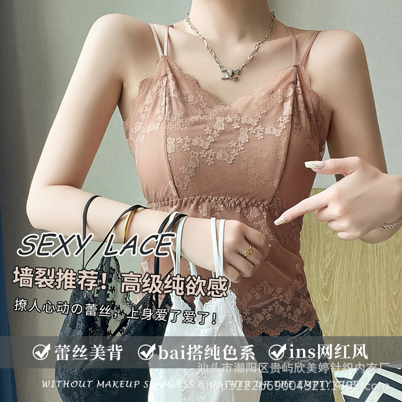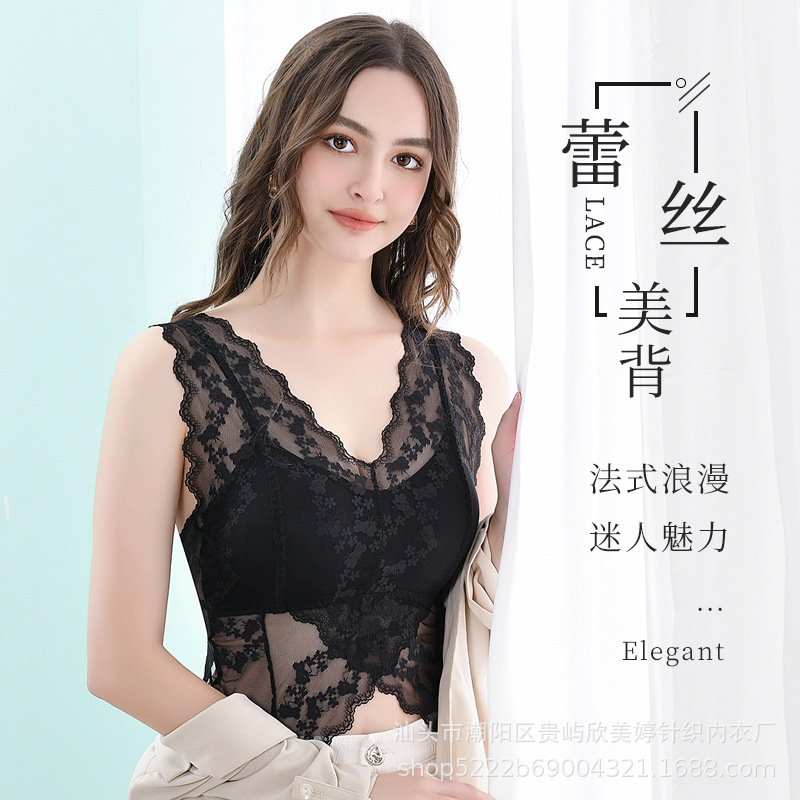 レースストラップベストの女性の中に胸パッドをつけて底を打って外に美背のブラジャーの一体の下着を着て、光を防ぎます。