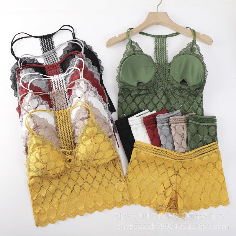 【セット】レースの底のサスペンダーのベストの女性は光を防ぐために胸のクッションを持って胸のセクシーなブラジャーの女性を拭きます。
