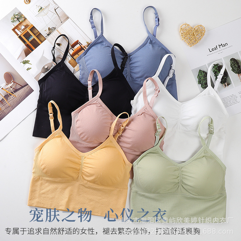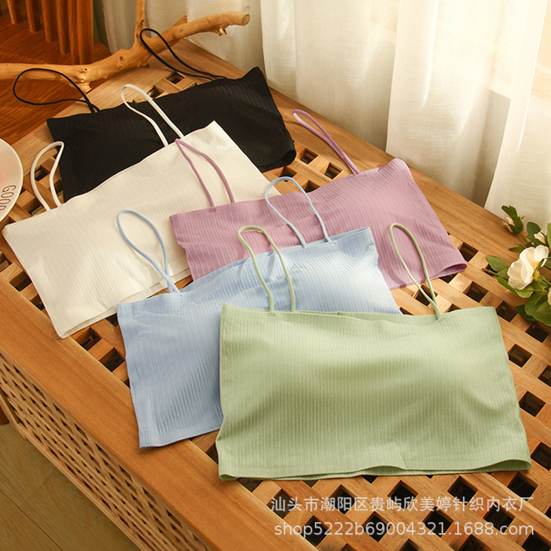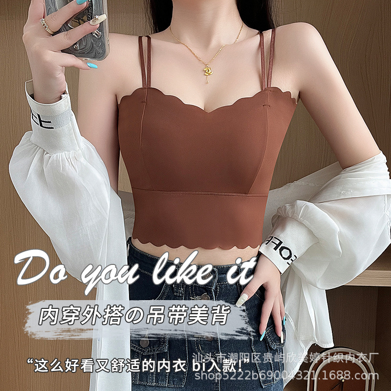 氷糸ストラップベストの女性の中に胸パッド付きの夏の薄いタイプの外に美背下着のブラジャーを着て胸を拭きます。