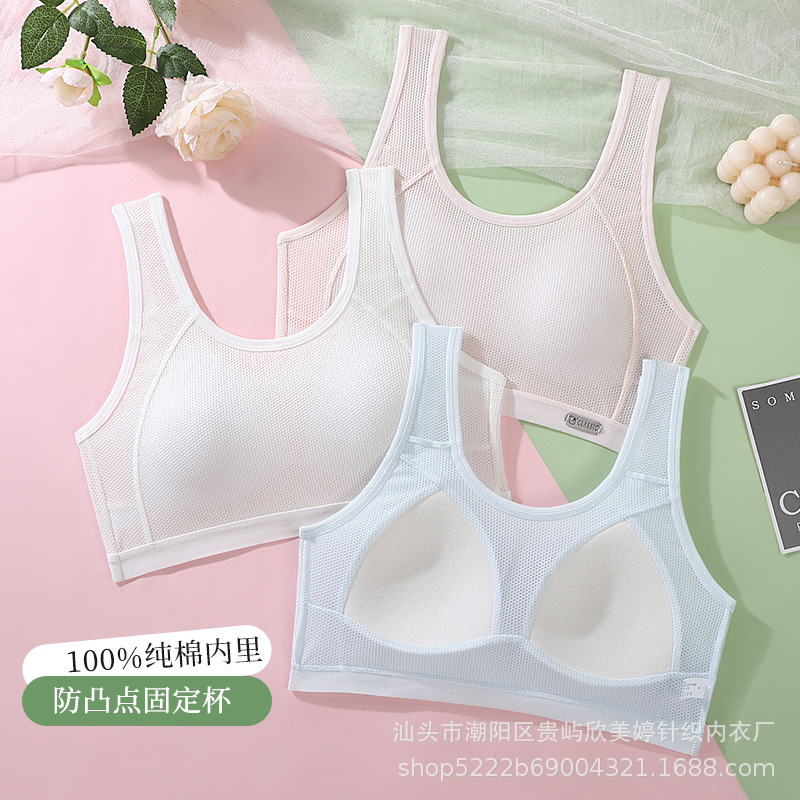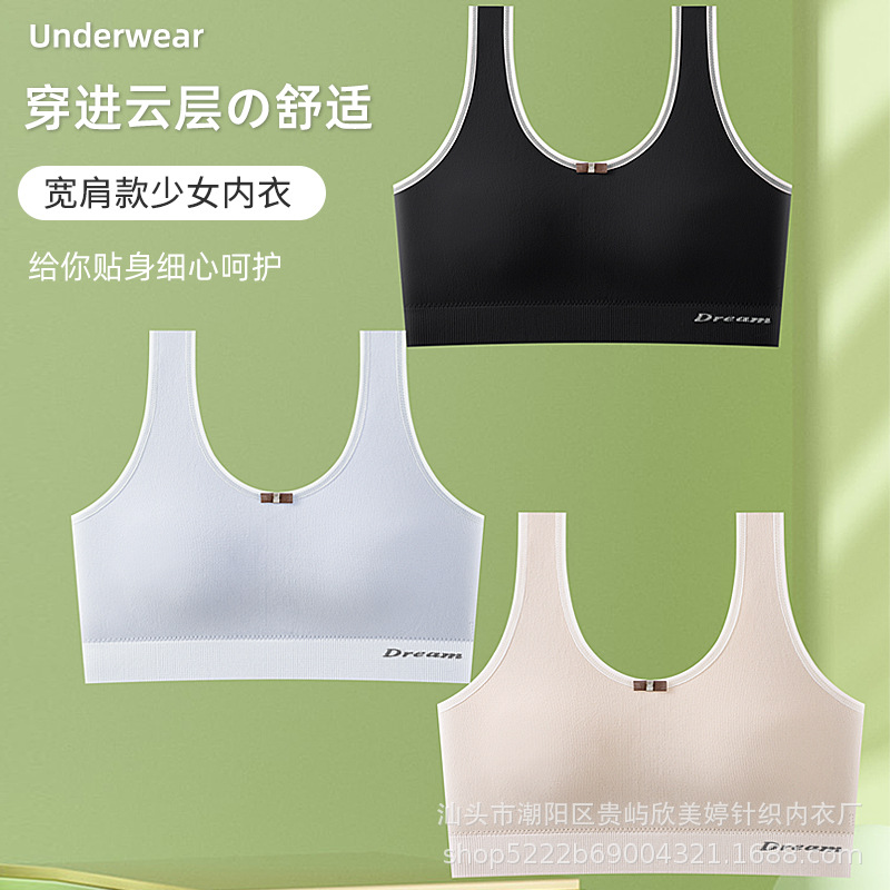 少女スポーツ下着女子スチールリングなし胸ストラップベスト式ブラジャー高校の学生は胸を着て光を防ぐ