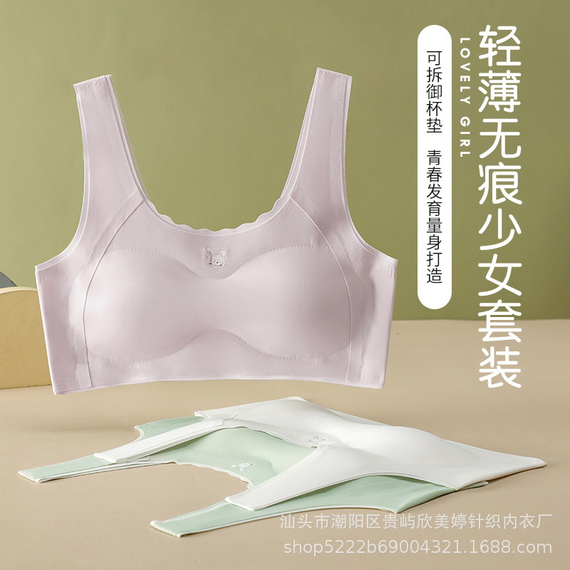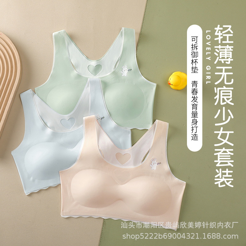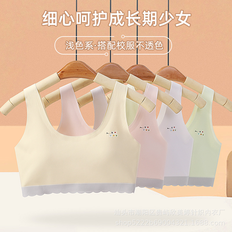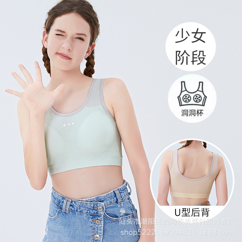 少女の美背のストラップの小さいベストは胸を巻いて胸を支えて発育期の学生を支えて底を打って光の跡のない少女のブラジャーを防ぎます。
