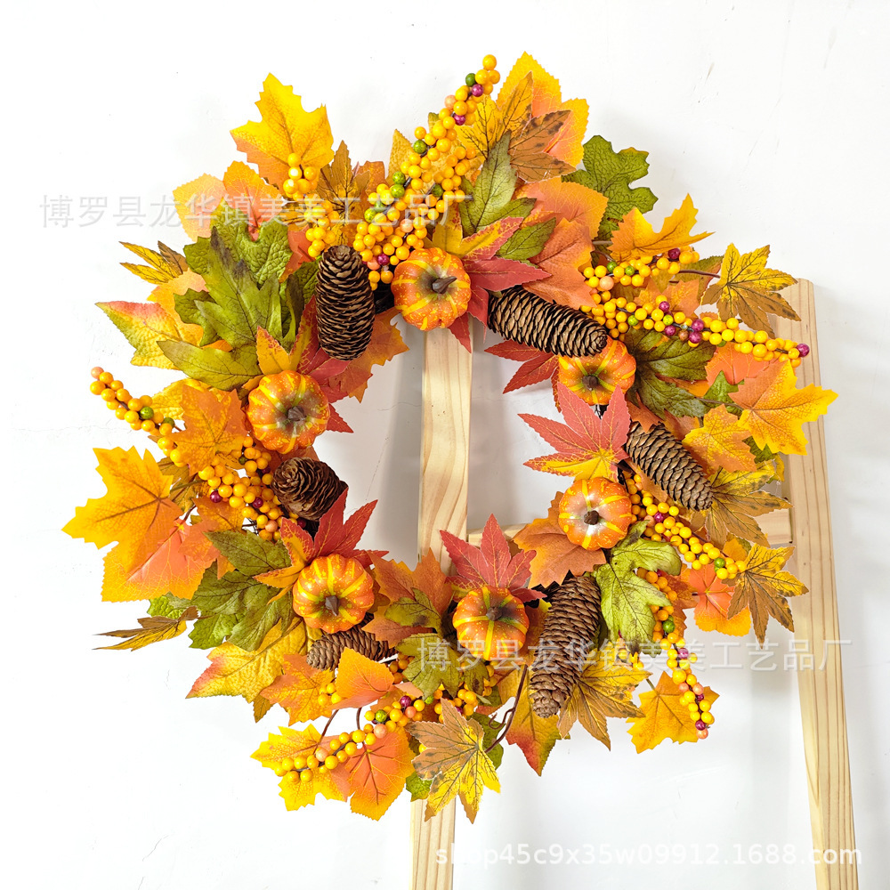 秋の感謝祭の花輪はカエデの葉のカボチャの松の実の豊作の節の50cmの花輪の門の壁をシミュレーションしてアマゾンを飾ります。