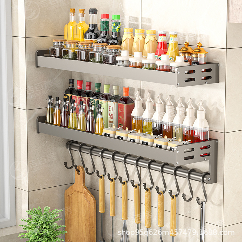台所調味料棚壁掛け式穴なし多層調味料収納棚多機能壁フック