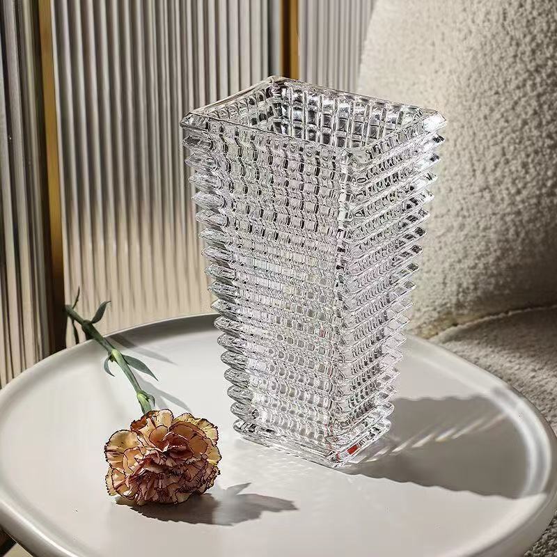 正方形の軽くて豪華なシンプルな水波紋ガラス花瓶透明水培植物リビングテーブル花瓶創意置物