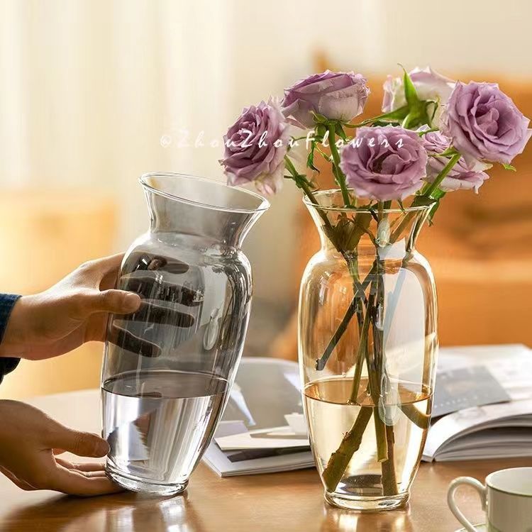 北欧花瓶ガラス透明クリエイティブ高级感リビング生け花食卓生花水养バラチューリップ