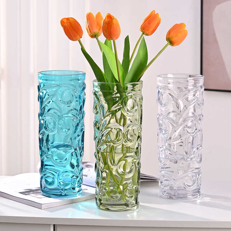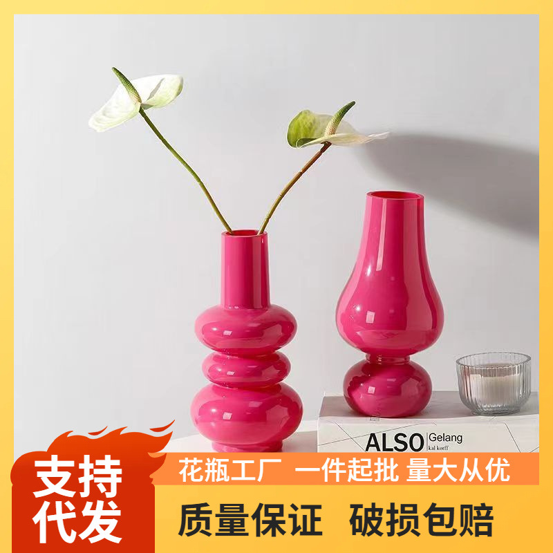 クリエイティブ透明ガラス水培植物ガラス花瓶小衆網赤カラー客間食卓装飾品