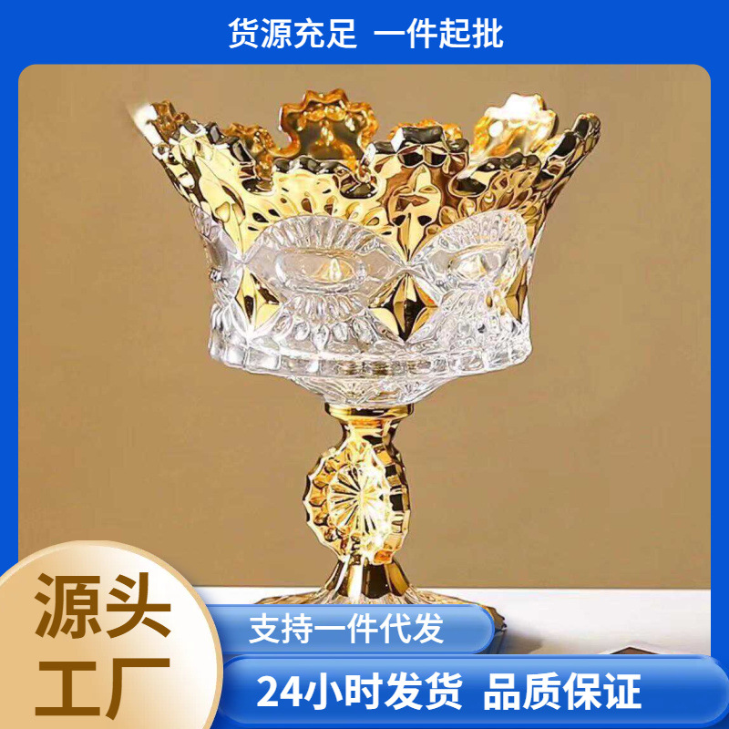 北欧風の軽い豪華なレトロの高い足の果物の皿の宮廷の風のエナメルの色彩の王冠の果物の斗の客間の食卓の装飾の置物