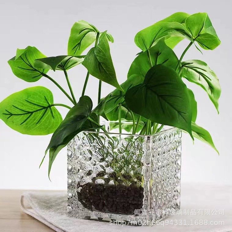 銅銭草植物植木鉢緑羅ガラス花瓶透明客間生け花水晶角筒シンプル装飾品