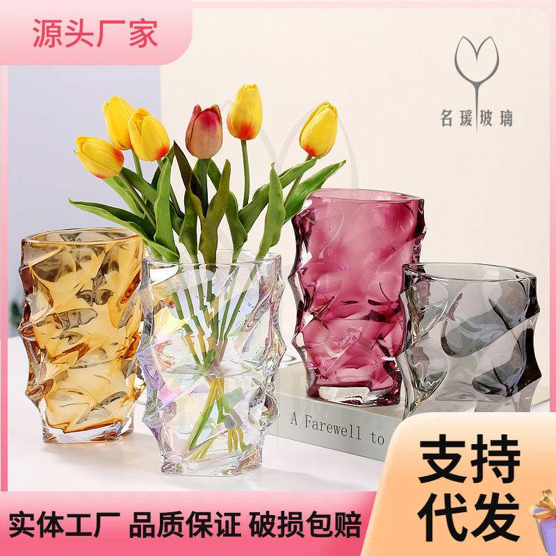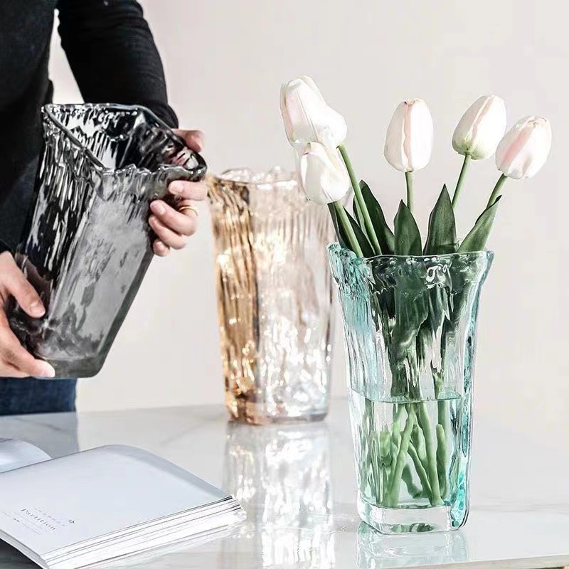 谷花瓶不规则なガラス北欧ins风ホームリビングルーム装饰置物ホテルクリエイティブ生け花花瓶