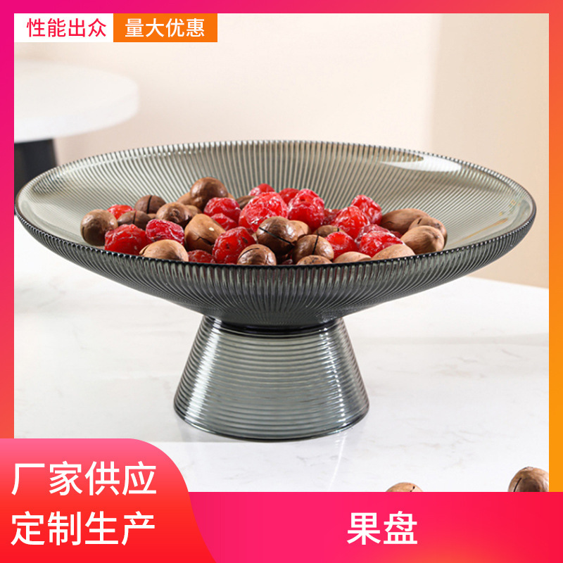 北欧ins風透明ガラス果物皿軽贅沢金メッキ創意リビング家庭用お茶の大サイズのお菓子皿