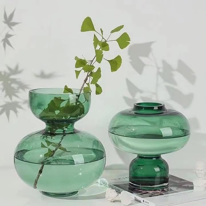 新しい装飾のアイデアシンプルで透明なリビングルームの生け花の置物北欧ins風グリーンガラスひょうたん花瓶
