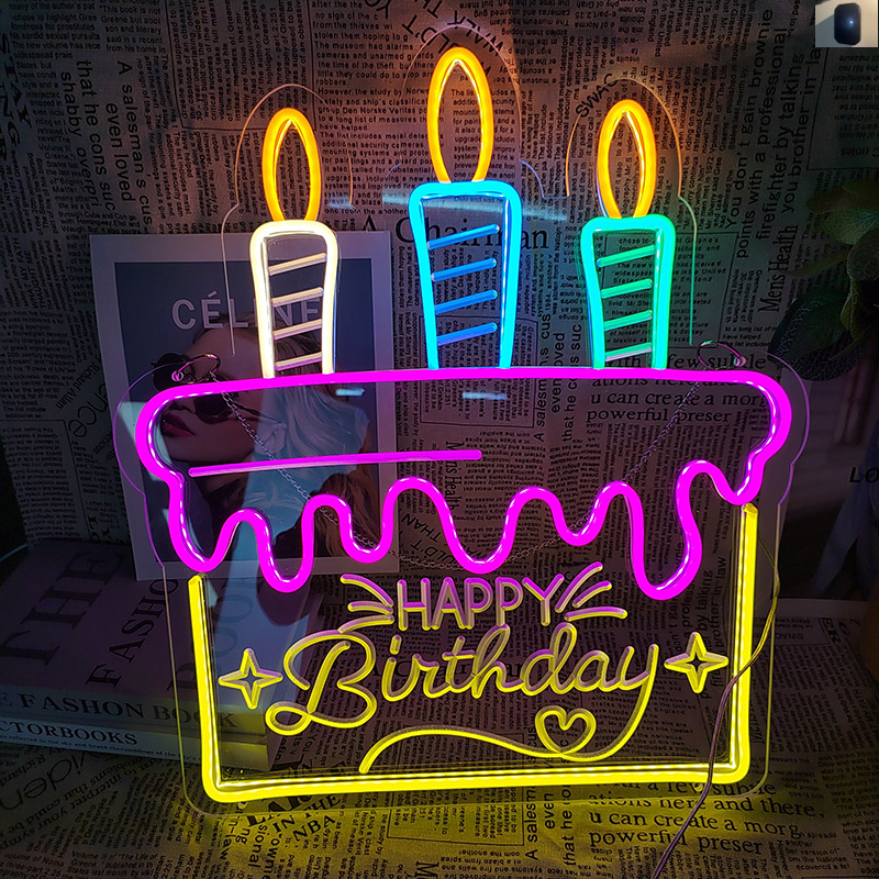 お诞生日おめでとうhappy birthday発光字ランププレートledネオン看板ケーキ饰りランプインスタ风