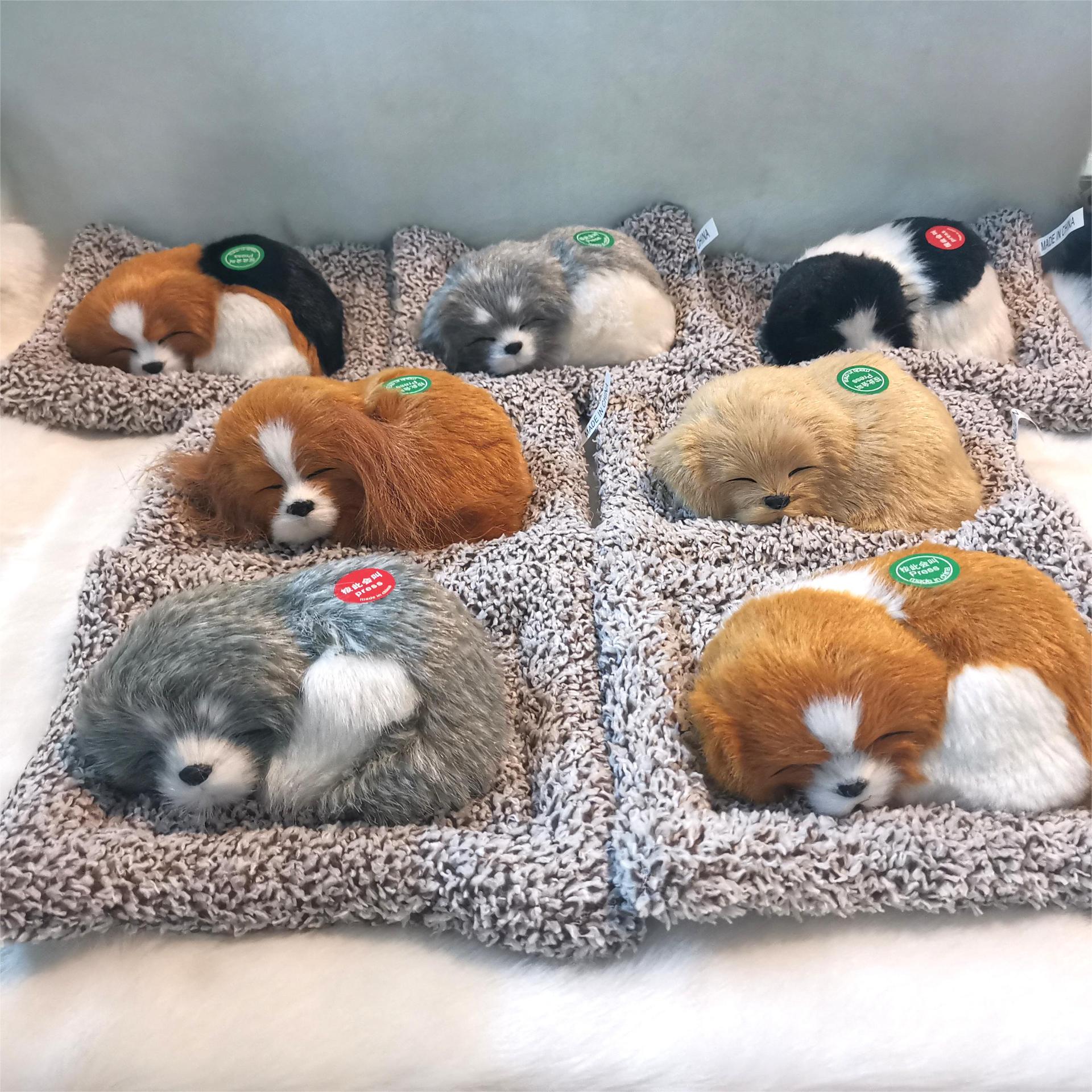 ぬいぐるみ模擬犬は鳴きます、模擬寝ている犬の車の装飾品、竹炭袋付き、空気を浄化する、家の装飾ギフト