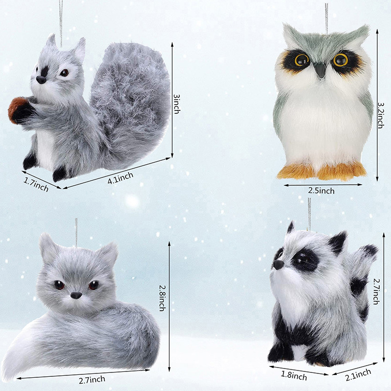 ぬいぐるみ風の動物(フクロウ、リス、キツネ、アライグマ)の置物、静態模型、家の装飾、ギフト