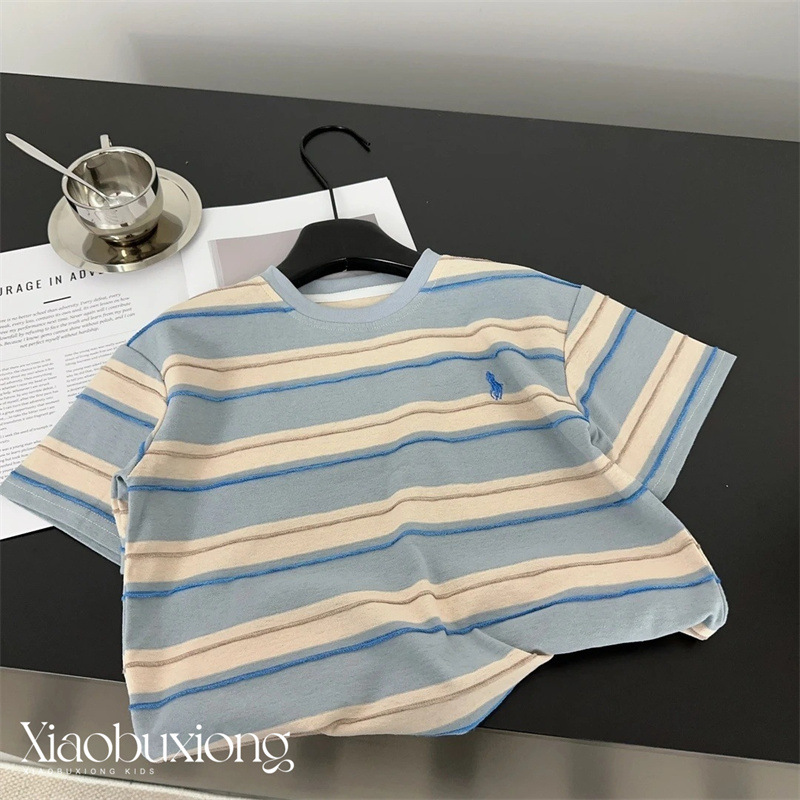 子供半袖Tシャツ2025新作男の子夏服ベビー半袖子供ストライプコットンボーイトップス夏T