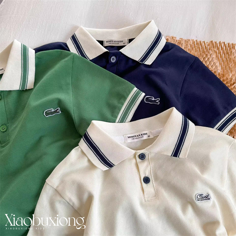 男児綿poloシャツ2025子供ニットゆるいtシャツ夏の薄い襟付き上着潮童百合半袖