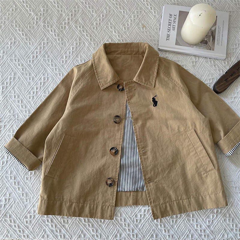 子供用無地ウインドブレーカージャケット2025年春秋新作男の子と女の子用ミッドレングスウインドブレーカーベビートップスとジャケットトレンディ