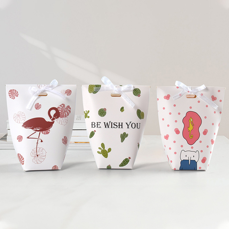 キャンディー色フラミンゴ折り畳みキャンディー箱現物手が美しいカラー箱を持っている小さなプレゼント包装シルクタオル箱