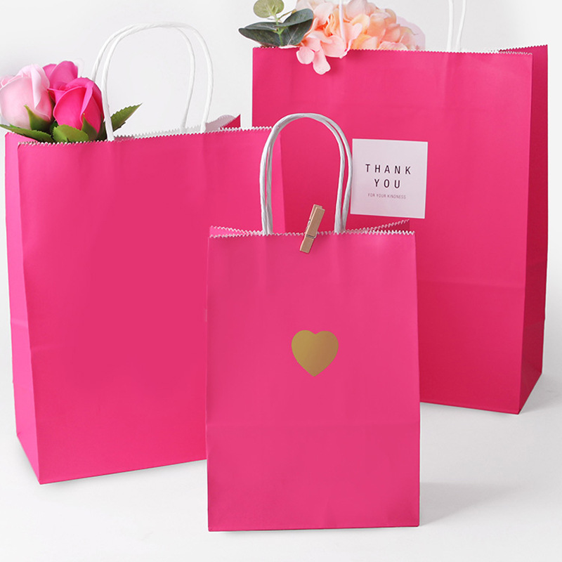 バラ色の白いクラフト紙袋の現物卸売り新多規格プレゼント包装紙袋10個/バッグ