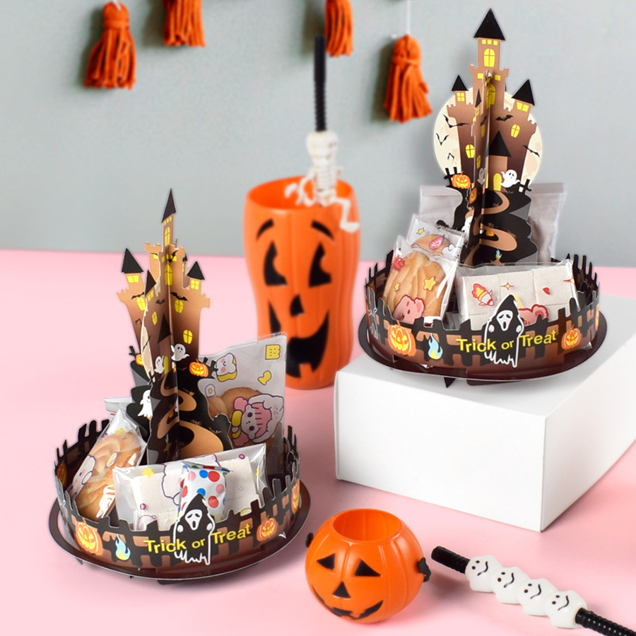 10pcsハロウィーンタワー型キャンディークッキー置き箱クリエイティブ円形ハロウィーンパーティー城キャンディートレイ