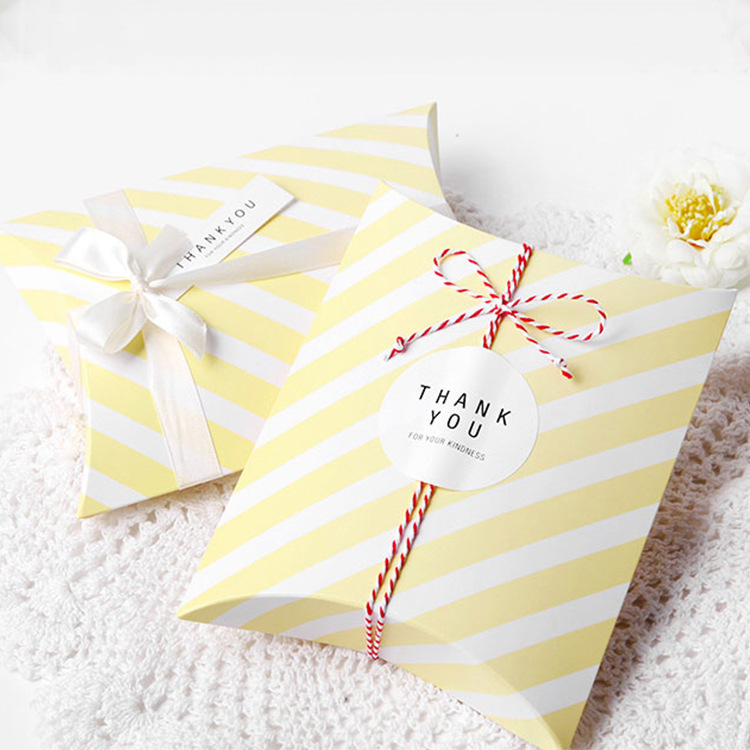 清新な斜めストライプのアクセサリーの枕の箱の現物は小さい包装の紙箱の韓国式の簡単なカラーの箱のシルクのティッシュの贈り物の箱を折り畳みます。
