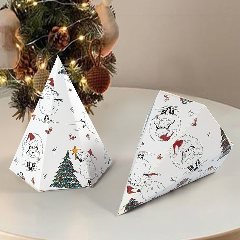 クリスマスカラフルな六面落書きクリスマスツリー型キャンディボックス折りたたみ小さなギフトかわいいタワー型ギフトボックス包装