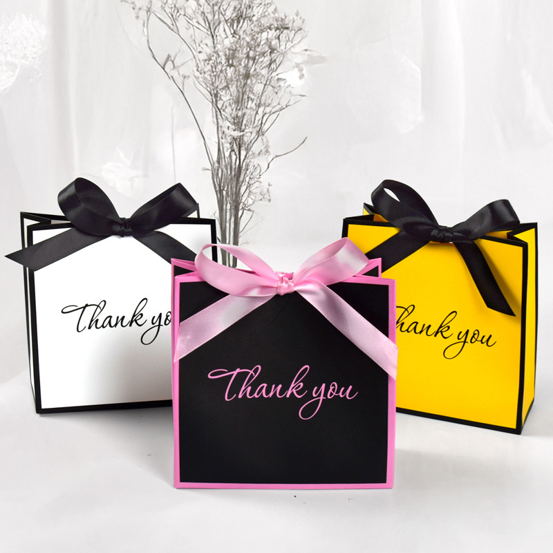 箔押し蝶結び付き、コントラストカラーの正方形ギフト包装箱、既製品、高級菓子・キャンディ用折りたたみ紙箱、お土産用