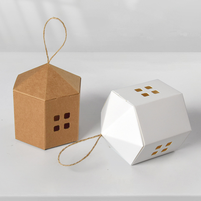 純色の手提げの小さい家の形のプレゼントの箱の現物の白い透かし彫りの簡単なdiyの手描きの紙の箱の10個/包みます