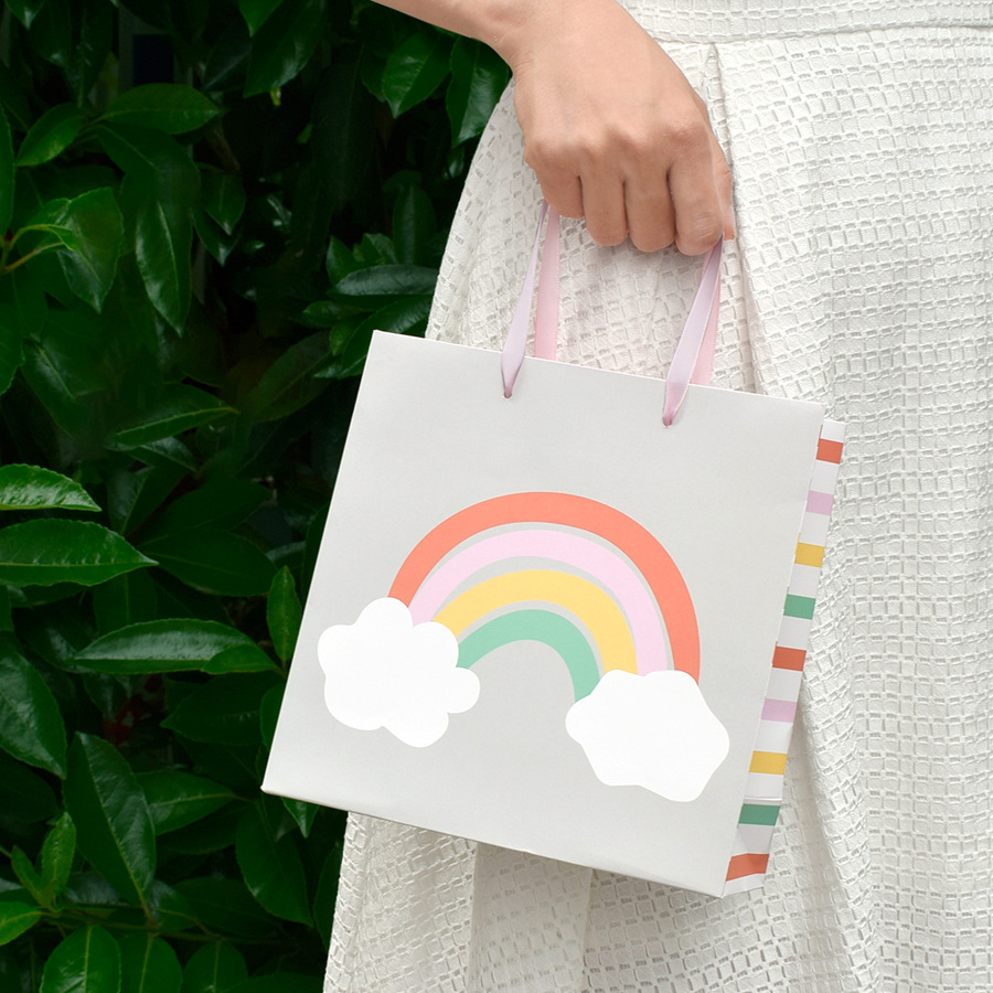 かわいい漫画の雲虹は白いカードのプレゼントの手提げ袋の現物のカラー印刷の四角い紙の手提げ袋を厚くします。