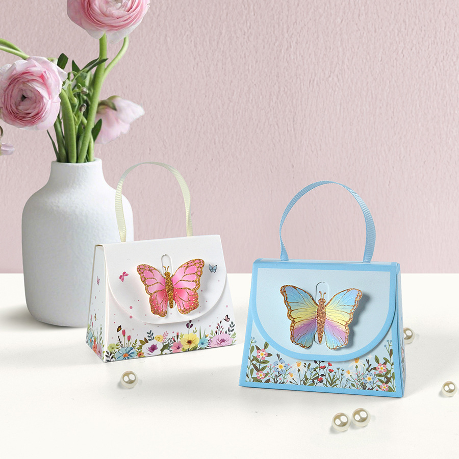 小型のピンクの少女の蝶の包装箱の現物のミニの復古の贈り物は手提げの包装袋の10個を折り畳みます/包みます
