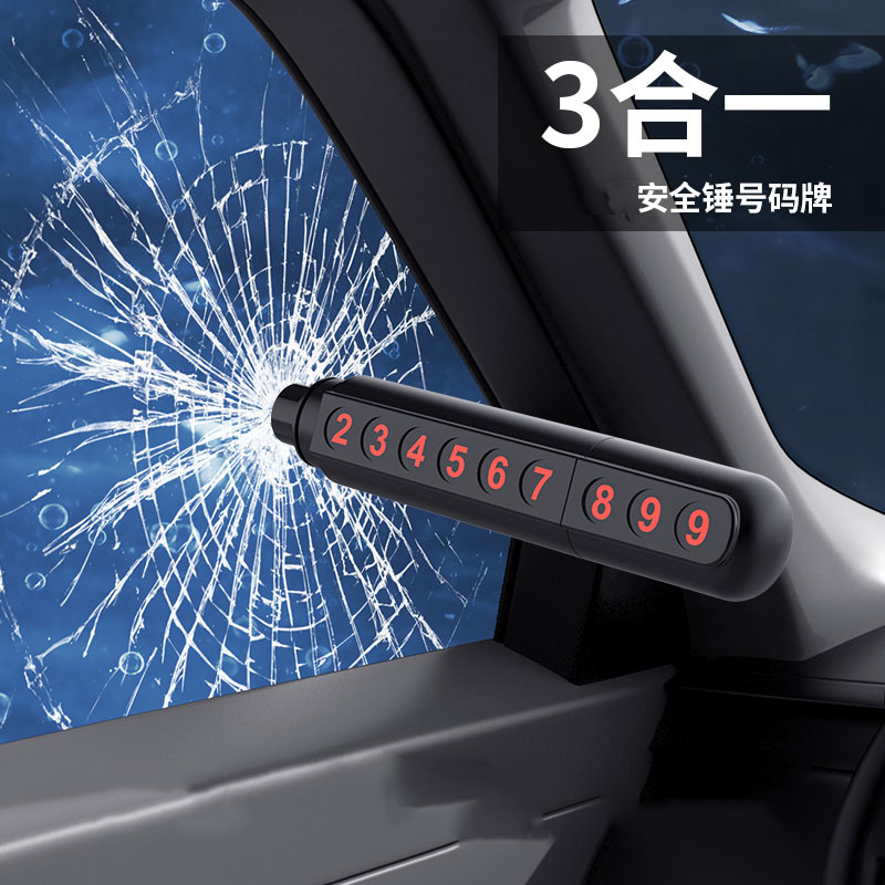 自動車臨時駐車カード多機能窓ブレーカ三合一駐車番号札シートベルト切断刃3r2166
