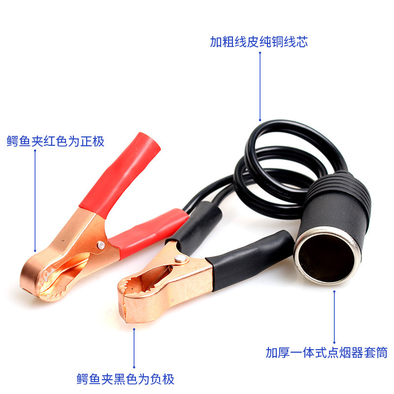 高品質自動車シガレットライター母座スリーブ純銅電瓶線電瓶クリップワニ口シガレットジョイント変換