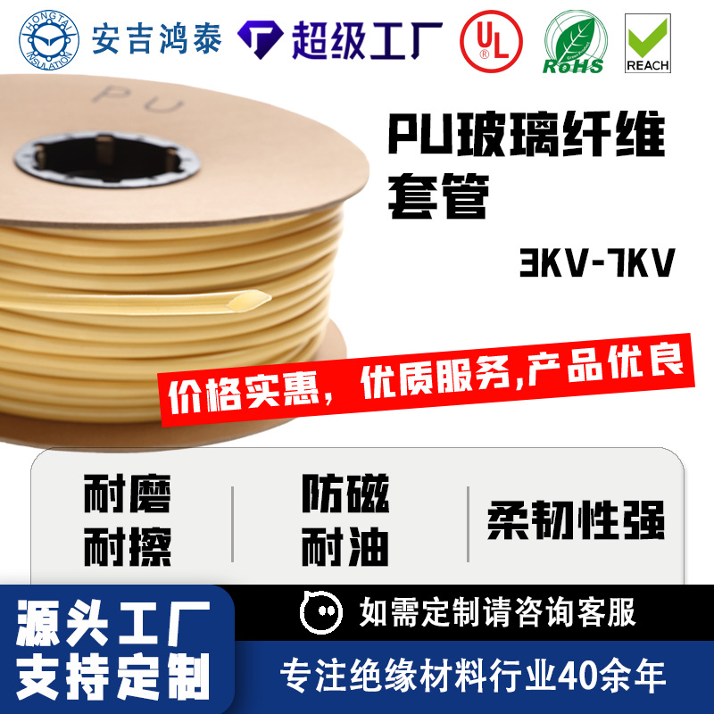ポリウレタングラスファイバースリーブ耐熱耐磁性絶縁PUグラスファイバーチューブワイヤーケーブルハーネス絶縁スリーブ