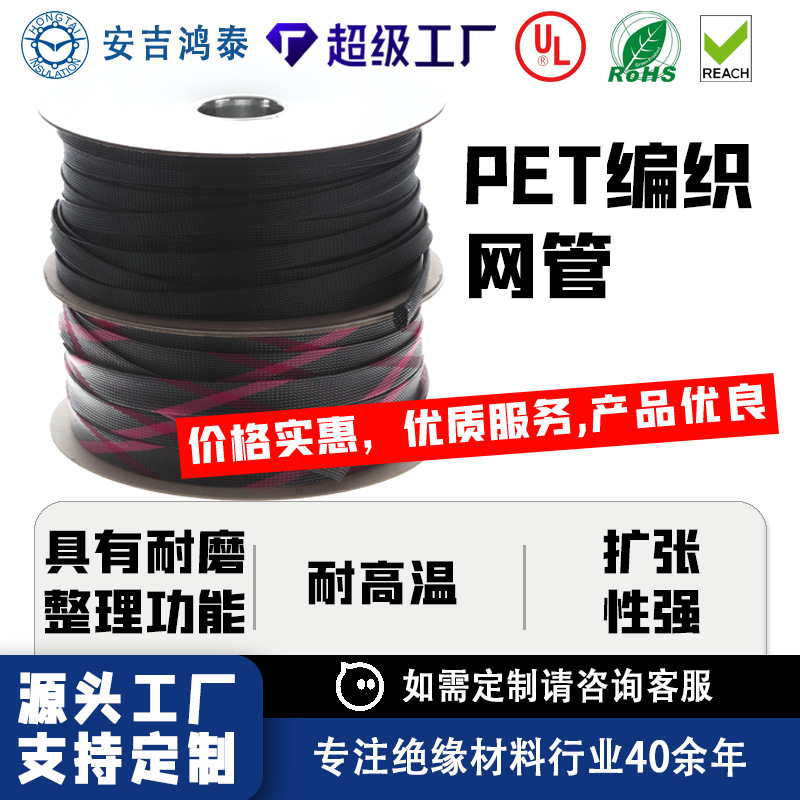 PET伸縮チューブ、難燃性ナイロン編組メッシュチューブ、耐摩耗性編組メッシュチューブ、猫の爪とネズミの噛みつき防止編組メッシュチューブ
