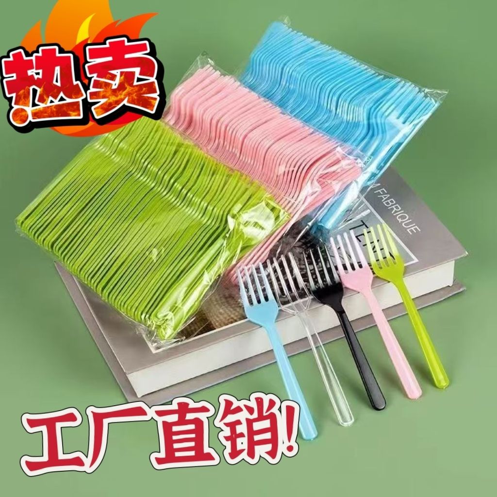 使い捨てフォーク、ターキーヌードルフォーク、フルーツフォーク、厚手のプラスチックインスタントラーメント、テイクアウトデザートケーキ、4本の歯