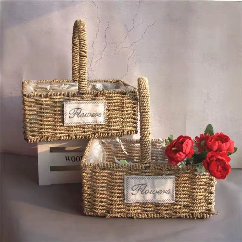 わら編み籐手持ちフラワーバスケット、卵、産後お土産、手織り母の日、中国のバレンタインデー、ネットセレブの花束