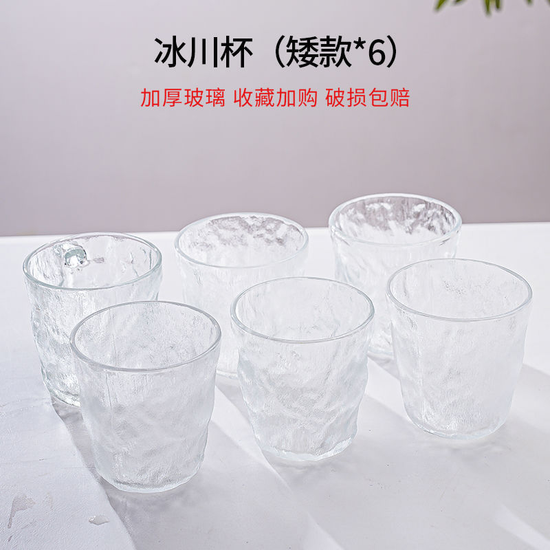 冰川纹玻璃杯子透明家用磨砂喝水杯子ins高颜值泡茶杯酒杯
