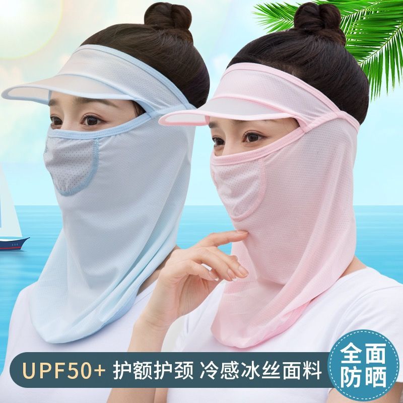 夏の日焼け止めアイスシルクマスク女性用フルフェイス薄型ネックガードベール屋外サイクリング電気自動車通気性マスク