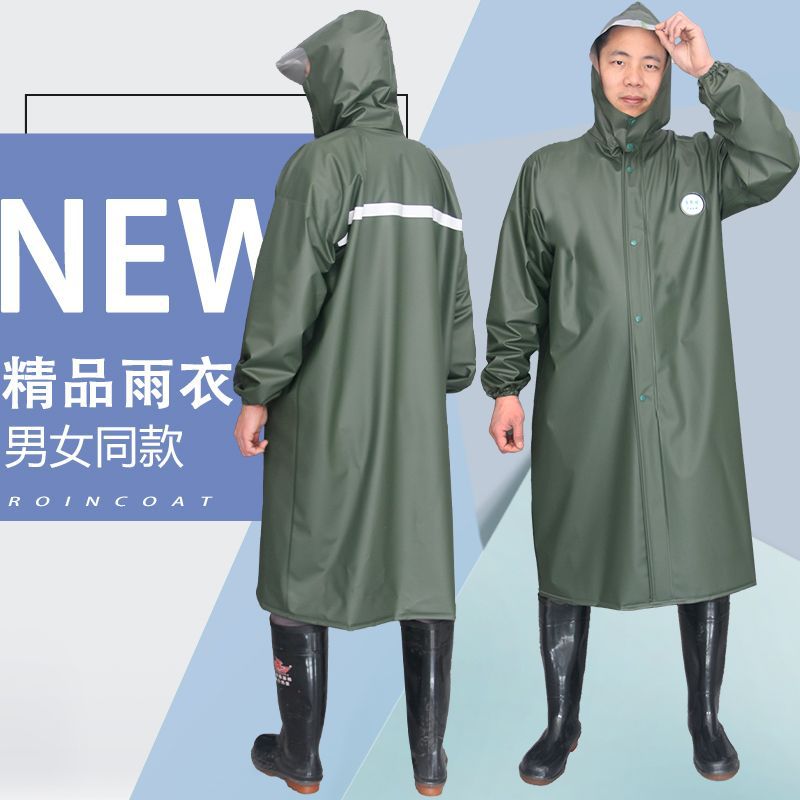 男女兼用ロングレインコート、大人用全身一体型防雨レインコート、中丈防水作業現場用厚手