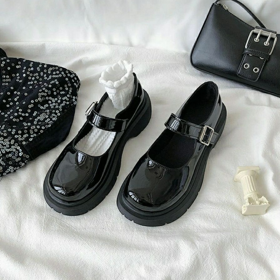 英国製レディース革靴、日本製厚底メリージェーンシューズ、ワンラインバックルハイヒールシューズ、ロリータ学生JK制服靴
