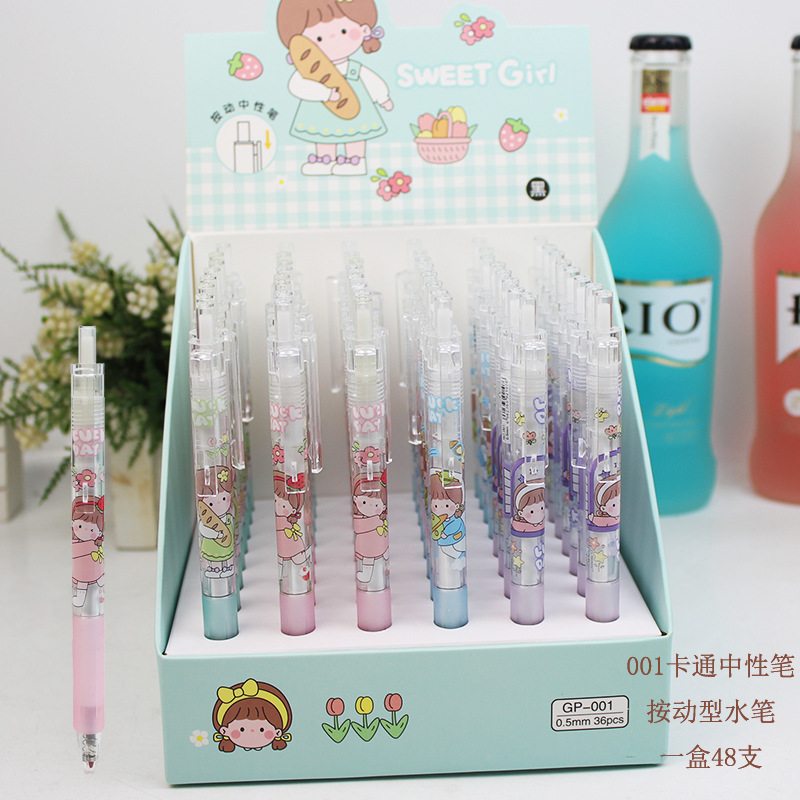 超萌透明押し中性ペン黒学生用0.5mmシンプル清新少女心事務用品黒ペン