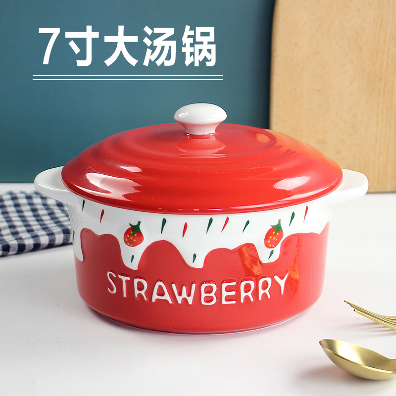 家庭用焙煎食器いちごハンドル焼き皿チーズパスタグラタン一柄皿洋食店陶磁器朝食皿
