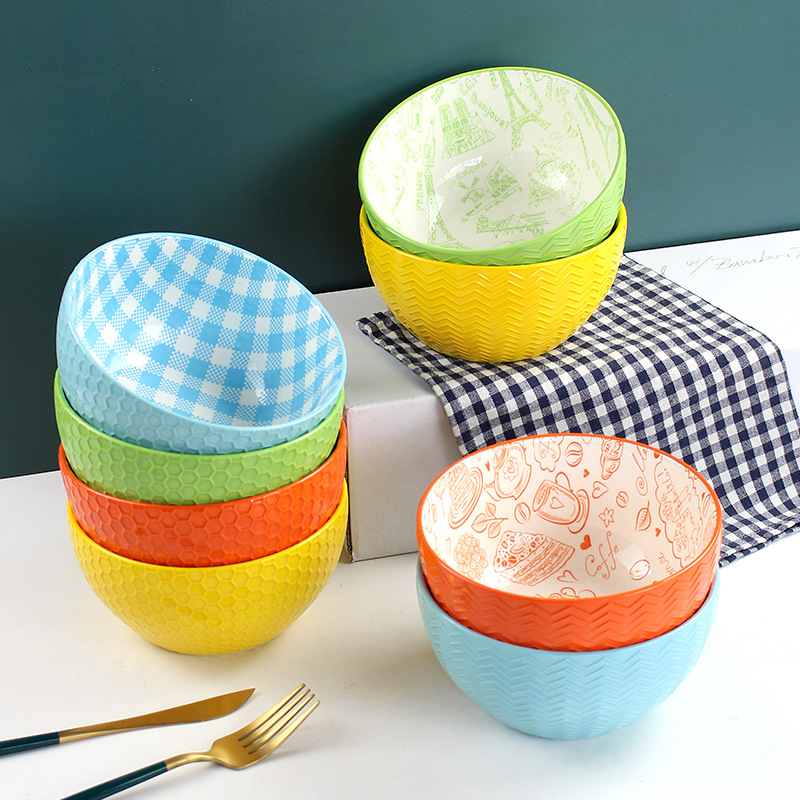 家庭用の小さい清新な陶磁器の食器の食事の碗の6寸の円形の浮き彫りの釉薬の下で彩りの茶碗の朝食の碗のアイデアの碗