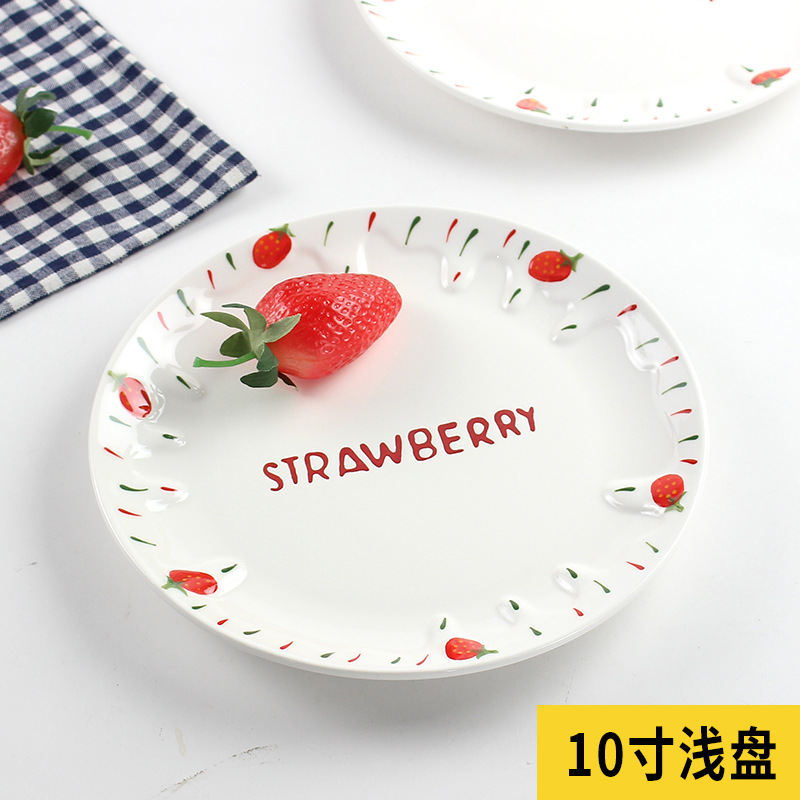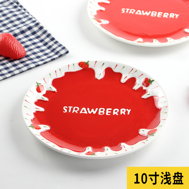 オリジナルレリーフ10インチセラミックいちご皿ins少女心家庭用かわいいサラダ皿浅皿クリスマス洋食皿