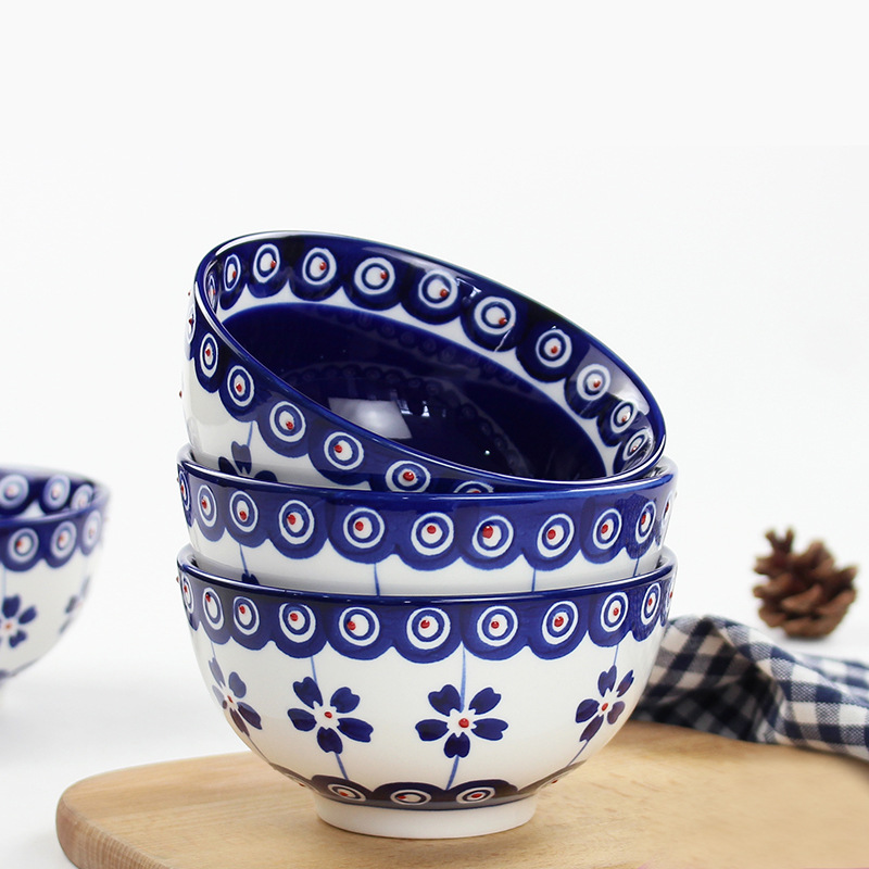 日本式5インチ家庭用食器汎用陶磁器スープ茶碗手作り釉薬の下の丸いレトロな麺茶碗